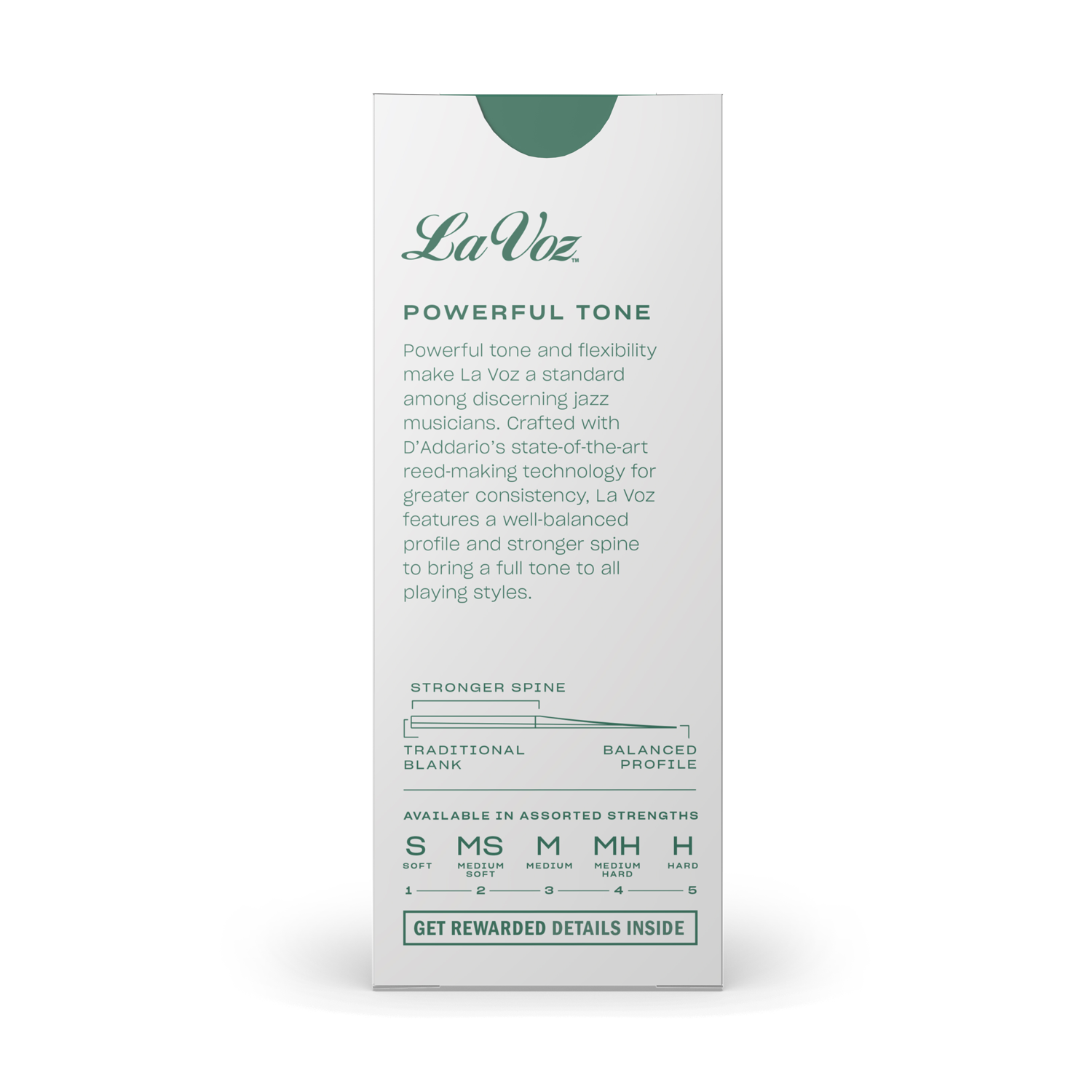 - Ähnlich dem Rico Schnitt sind auch die La Voz Blätter „unfiled“ und weisen ein dünneres Profil und einen dünneren Tisch auf. Der Stärkebereich von La Voz bietet mehr Flexibilität, und ihr tiefer, kräftiger Ton macht sie zum Standard unter Jazzmusikern. Die modernisierten Blatt-Fertigungsmaschinen von Rico und modernste Verfahren machen La Voz Blätter heute gleichförmiger denn je.