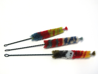 Bunter Wollwischer für die Sopraninoblockflöte zum täglichen Reinigen des Instrumentes.