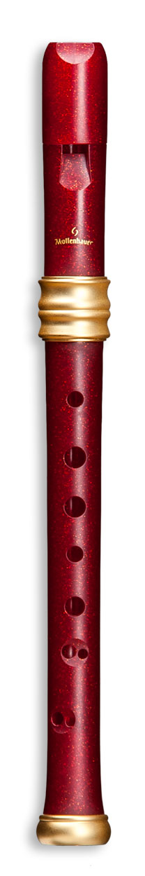 Sopranblockflöte aus rotem Kunststoff Modell Adri's Traumflöte mit barocker Griffweise und Doppellöchern. Die großen Tonlöcher sind für Kinder besonders gut zu spüren.