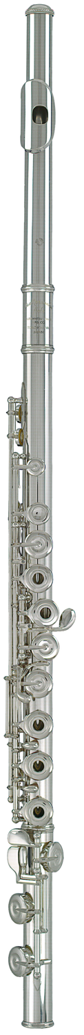 Silberrohrflöte mit vorgezogenem G, E-Mechanik, Ringklappen, C-Fuß und Spitzdeckelmechanik