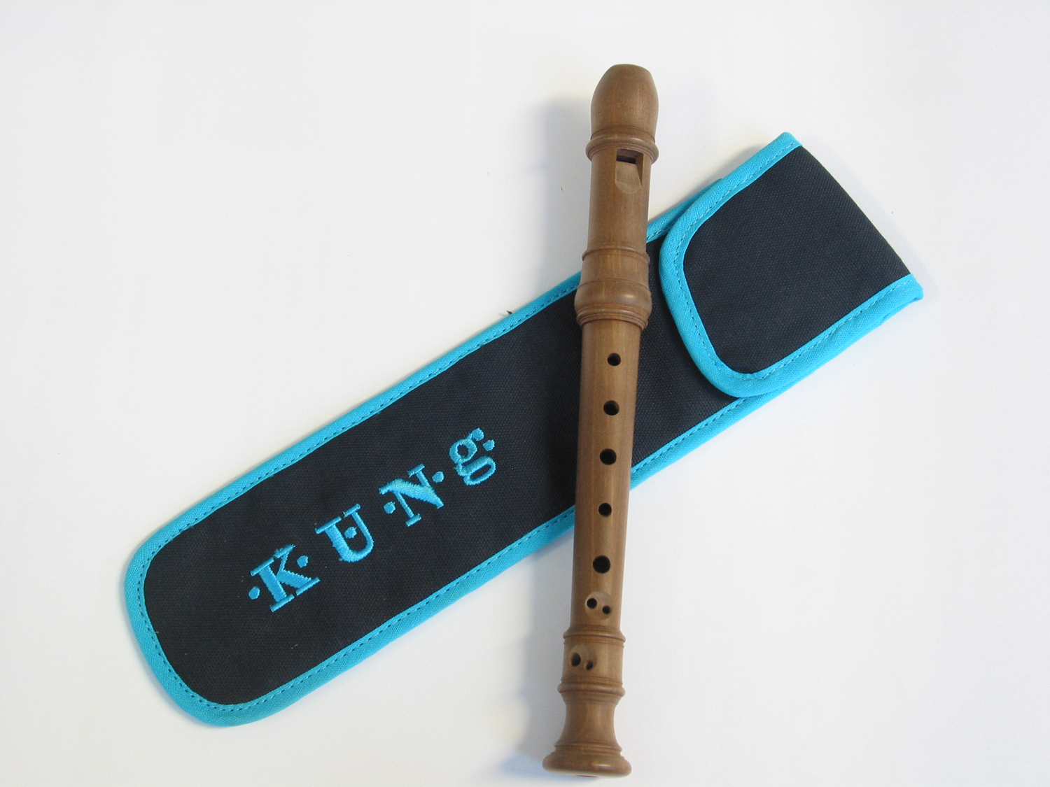 Baumwollhülle für die Sopraninoblockflöte von Küng in blau.