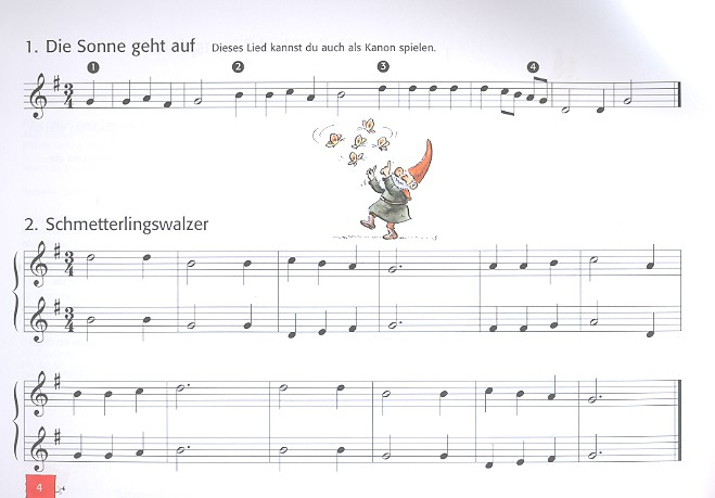 | Oldenkamp, M., Koautor Blockflötenland ist eine phantasievolle, kindgerechte Schule in drei Bänden für Anfänger auf der Blockflöte und in der Musik. Hier eröffnet sich den Kindern eine neue, bunte Welt voll Musik, die sie mit ihrer Blockflöte erforschen. Von einem Zauberer und einer weisen Eule an die Hand genommen, machen sie hier ihre ersten musikalischen Schritte. Auf der Reise lernen sie Schritt für Schritt nicht nur, wie man auf der Blockflöte spielt, sondern auch das Noten lesen und wichtige Musikzeichen. Lustige Musikstücke, Rätsel, Spiele, bekannte Abzählreime und Lieder für einen oder mehrere Spieler sorgen für Spaß und Abwechslung auf dem Weg. Bei jedem neuen Griff oder Zeichen dürfendie kleinen Abenteurer in Band 1 den dazugehörigen Aufkleber aus dem mitgelieferten Sticker-Blatt selbst heraussuchen und einkleben. In Band 2 kündigt ein beiliegendes Plakat den Blockflötenzirkus an: Die Akteure sind natürlich die jungen Schüler, die hier allerlei Tricks und Spielereien auf der Blockflöte lernen. In Band 3 können die Schüler schon schwierigere Stücke und Lieder auf der beiliegenden CD anhören und dann zur separat eingespielten Begleitung selbst ausprobieren. Die CD kann auch gut zum Vorspielen der Lieder verwendet werden. Diese zusätzlichen Elemente machen diese Blockflötenschule zu einer echten Mitmach-Schule, die sowohl im Einzel- als auch Gruppenunterricht eingesetzt werden kann. | |
