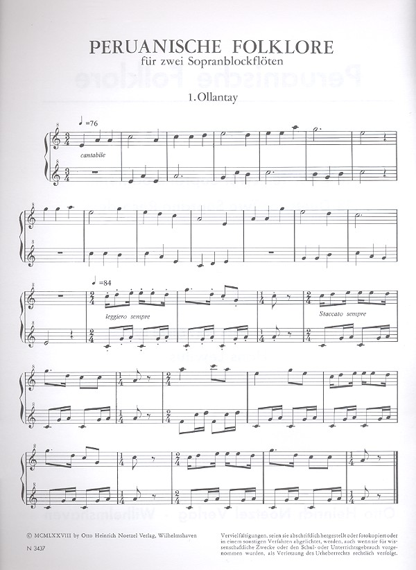 | Peruanische Folklore für 2 Sopranblockflöten Spielpartitur | |