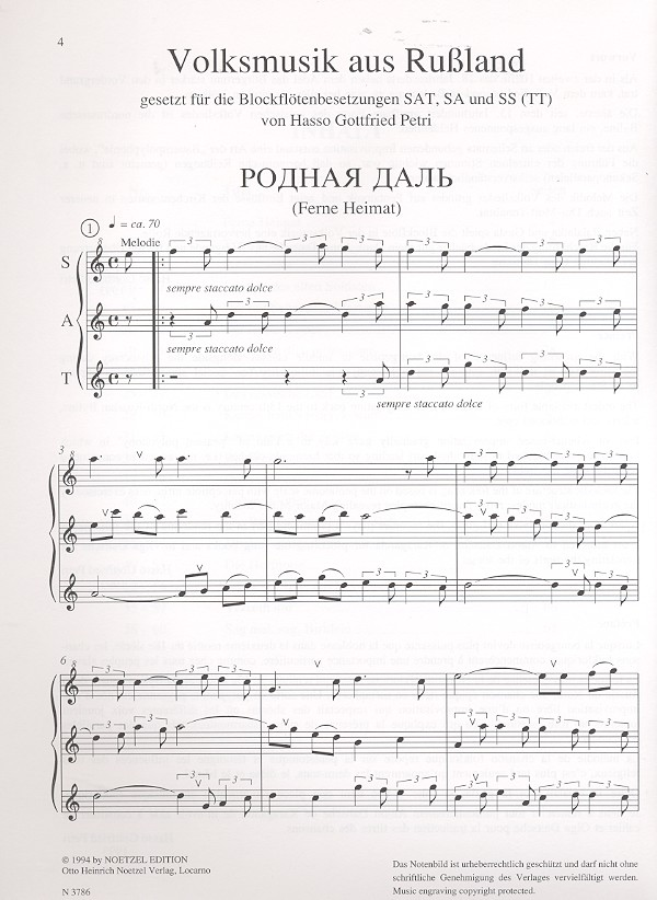 | Internationale Folklore Band 6 (Russland) für Blockflöten (SS, SA, SAT) | |
