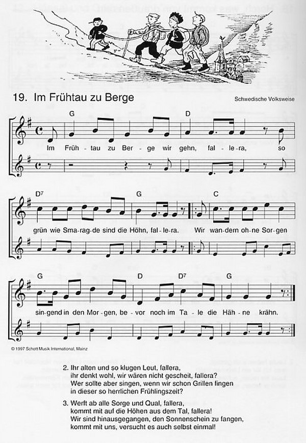| Magolt, Hans, ed Magolt, Marinanne, ed Estenfeld-Kropp, Christa, Illustrationen Alle Vögel sind schon da Abendlied Bruder Jakob Bunt sind schon die Wälder Das Wandern ist des Müllers Lust Der Kuckuck und der Esel Der Mai ist gekommen Der Mond ist aufgegangen Die Gedanken sind frei Dornröschen war ein schönes Kind Ein Jäger aus Kurpfalz Ein Männlein steht im Walde Ein Vogel wollte Hochzeit machen Es tanzt ein Bi-Ba-Butzemann Fuchs du hast die Gans gestohlen Guten Abend gut' Nacht Hänsel und Gretel Horch was kommt von draußen rein Im Frühtau zu Berge Jetzt fahr'n wir über'n See Kein schöner Land in dieser Zeit Kommt ein Vogel geflogen Kuckuck Kuckuck Schneeflöckchen Weißröckchen Summ summ summ Suse liebe Suse Wenn die bunten Fahnen wehen Wenn ich ein Vöglein wär Wer hat die schönsten Schäfchen Widele wedele Winter ade | |