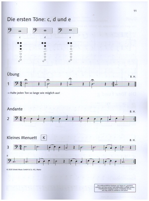| Die neue Schule für alle, die schon Blockflöte spielen können und die Bassblockflöte erkunden möchten. Anhand von zahlreichen Solostücken, Duetten und Werken mit Klavier- oder Cembalobegleitung führt die Schule in das Bassblockflötenspiel und den Bassschlüssel ein. Quartette sind zum Download erhältlich. Spieltipps und Wissenswertes sowie Etüden zur Förderung der Fingergeläufigkeit ergänzen den Lehrteil. Der Schwerpunkt liegt in der Musik des 16.-18.Jahrhunderts. In beiden Ausgaben wurde die Klavierstimme der tiefen Basslage angepasst. Zeichenerklärung Die ersten Töne: c, d und e Die Töne f und g Die Töne A und a Die Töne B und b Der Ton c' Die Töne H und h Die Töne G und F Der Ton fis Der Ton es/dis Der Ton cis/des Die Töne cis'/des' und d' Der Ton gis/as Die Töne e' und f' Der Ton es'/dis' Die Töne Fis/Ges und Gis/As Anhang Grifftabelle Verzeichnis der Quartette und Quintette | |