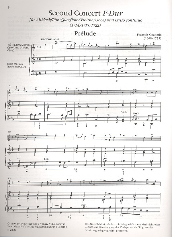 | Concerts Royaux Second Concert F-Dur für Altblockflöte unb bc. | |
