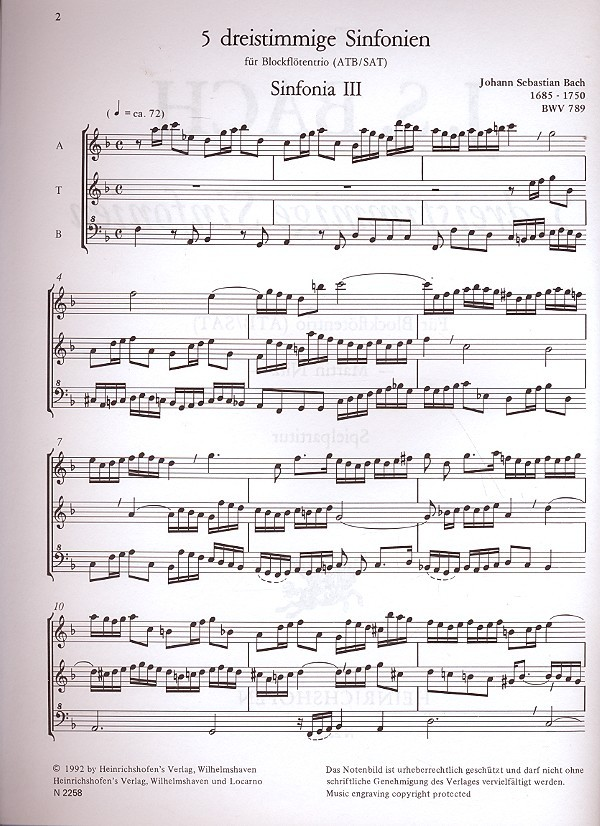 | 5 dreistimmige Sinfonien für Blockflötentrio (ATB/SAT) Spielpartitur | |