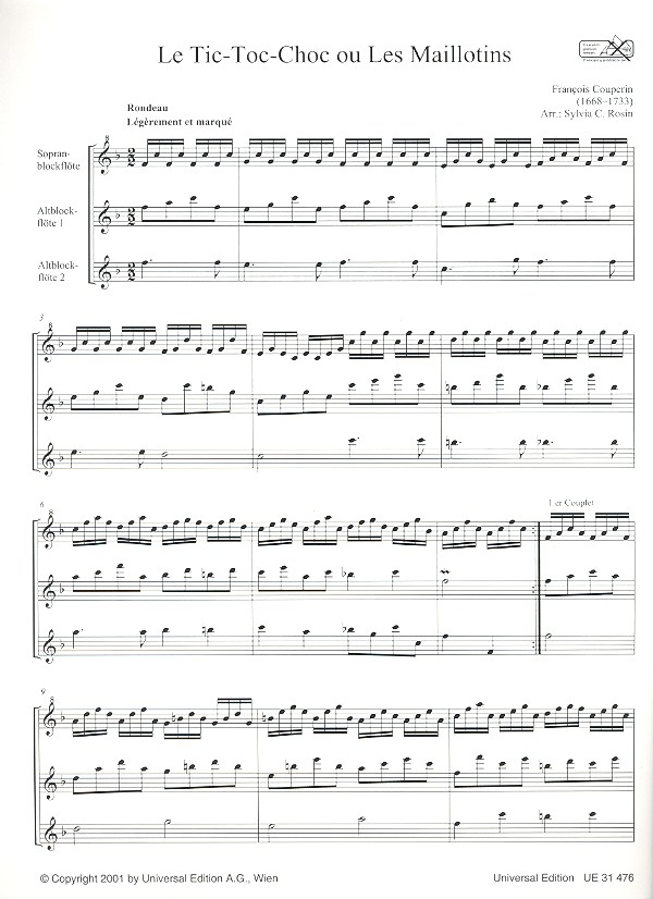 | Ensemble Dreiklang Berlin, ed Rosin, Sylvia C., ed Das butterbrot (Mozart) Elfentanz (Grieg) Le tic-toc-choc (Couperin) | |
