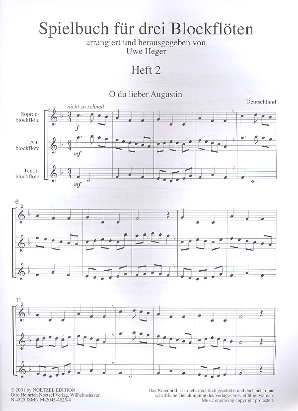 | O du lieber Augustin Band 2 für 3 Blockflöten (SAT) Spielpartitur | |
