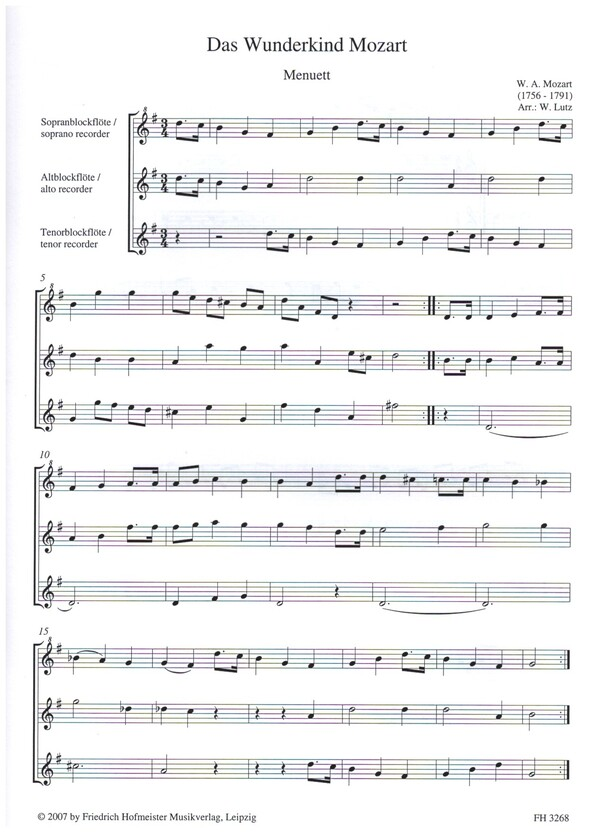 | Das Wunderkind Mozart für 3 Blockflöten (SAT) Partitur und Stimmen | |