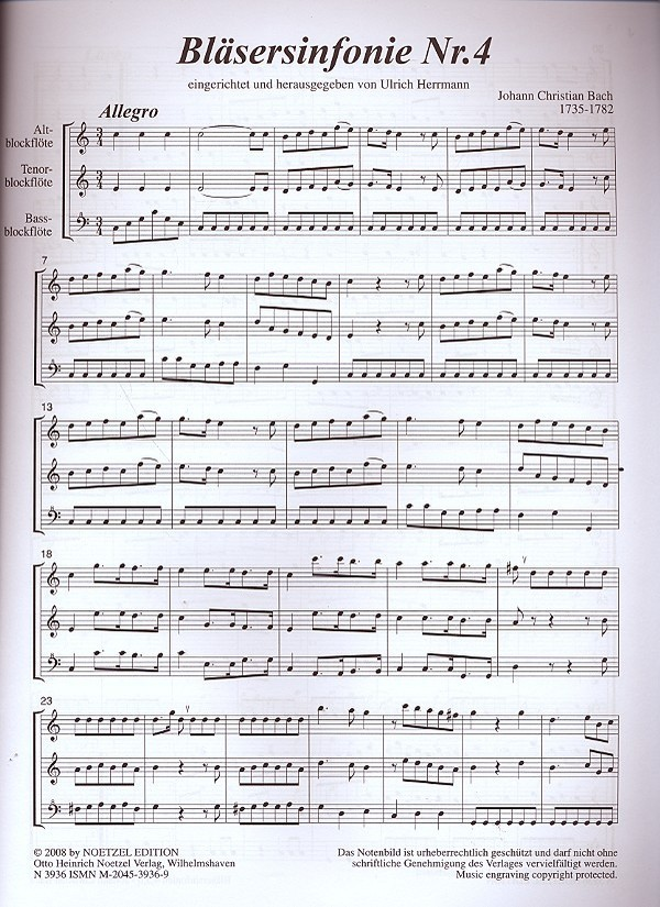 | 3 Bläsersinfonien Nr.4-6 für 3 Blockflöten (ATB) oder Blockflötenensemble Partitur und Stimmen | |