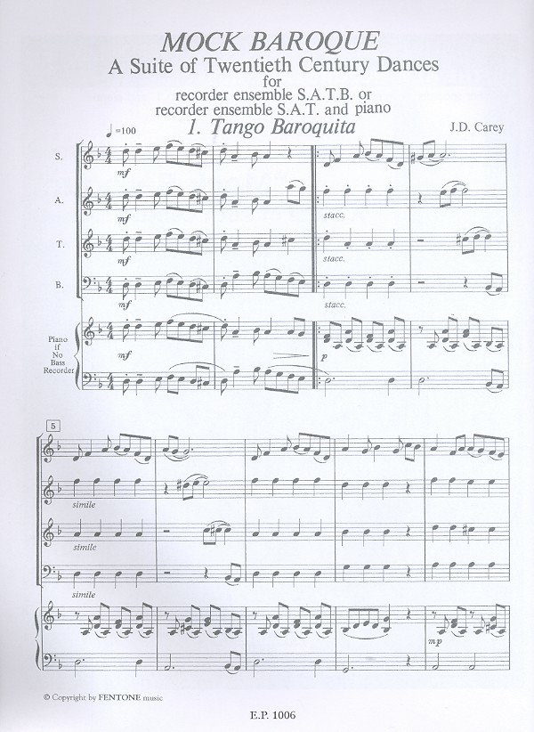 | Mock Baroque A suite of 20th for recorder ensemble (SATB/SAT+PIANO) | |