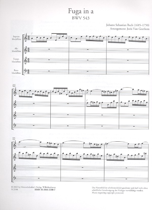 | Fuge a-Moll BWV543 für 4 Blockflöten (SATB) Partitur und Stimmen | |