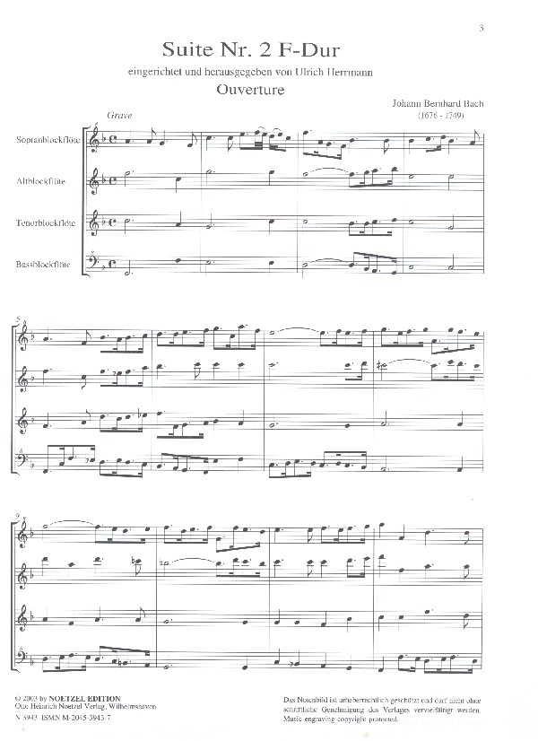 | Suite F-Dur Nr.2 für 4 Blockflöten (SATB) Partitur und Stimmen | |
