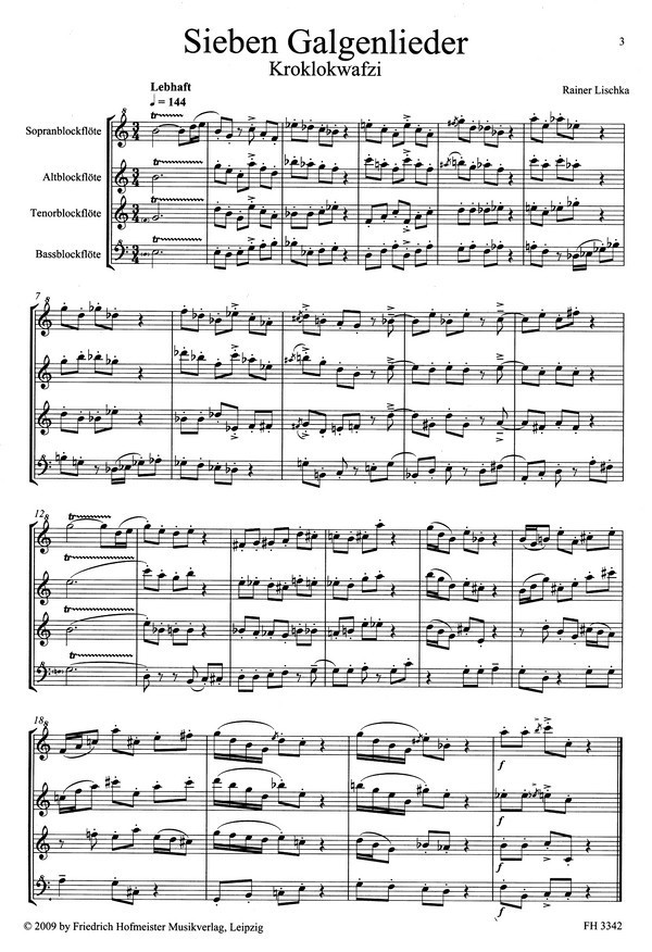 | 7 Galgenlieder für 4 Blockflöten (SATB) Partitur und Stimmen | |