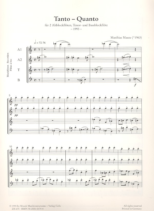 | Tanto-Quanto für 4 Blockflöten (AATB) | |