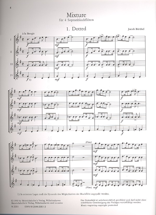 | Mixture für 4 Sopranblockflöten Partitur | |