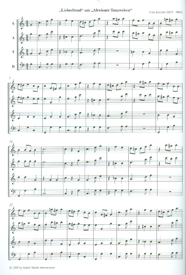 | Liebesfreud aus Altwiener Tanzweisen für 4 Blockflöten (SATB) Partitur und Stimmen | |