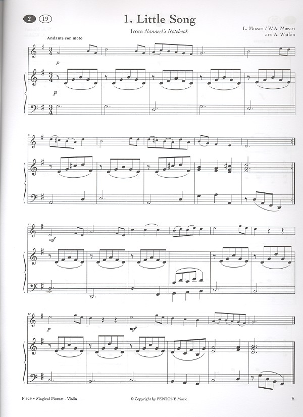 | Nachfolgeausgabe => F928-404 Watkin, Andrew, arr. Ave verum corpus KV618 Sehnsucht nach dem Frühling KV596 Little song Andante from Don Giovanni Adagio KV481 Allegro from Wiener Serenade Andante con Moto from Le Nozze di Figaro Menuetto from Symphony no.40 Adagio KV156 Serenade from Don Giovanni Champagne Aria Papageno's Aria Andante and allegro from concerto for violin G major no.3 German dance C major no.3 KV605 Allegro from Eine kleine Nachtmusik Minuet from Eine kleine Nachtmusik Larghetto from Le nozze di Figaro Minuet | |