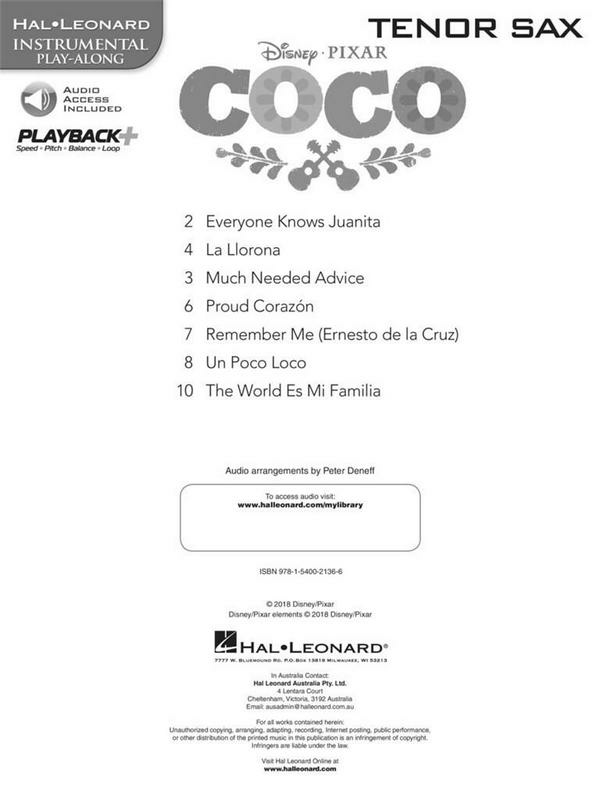 | HL00263809 Disney/Pixar's Coco (+Audio Online): for tenor saxophone | |