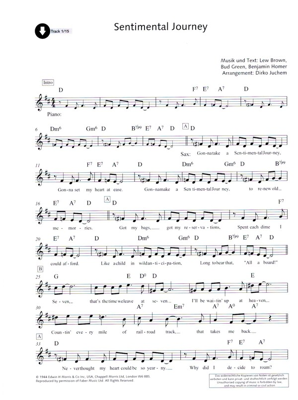 | Inhalt (BuSS):Juchem, Dirko, arr. Schott Saxophone Lounge 16 most beautiful Swingin' Standards Body And Soul Mood Indigo Caravan A String Of Pearls The Lady Is A Tramp Sentimental Journey In The Mood Perdido Tequila Mack The Knife | |