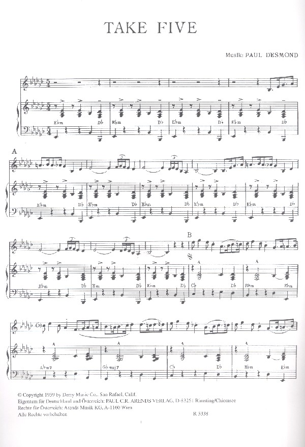 | Take Five für Klavier und B-/Es-Instrument 3 Stimmen | |