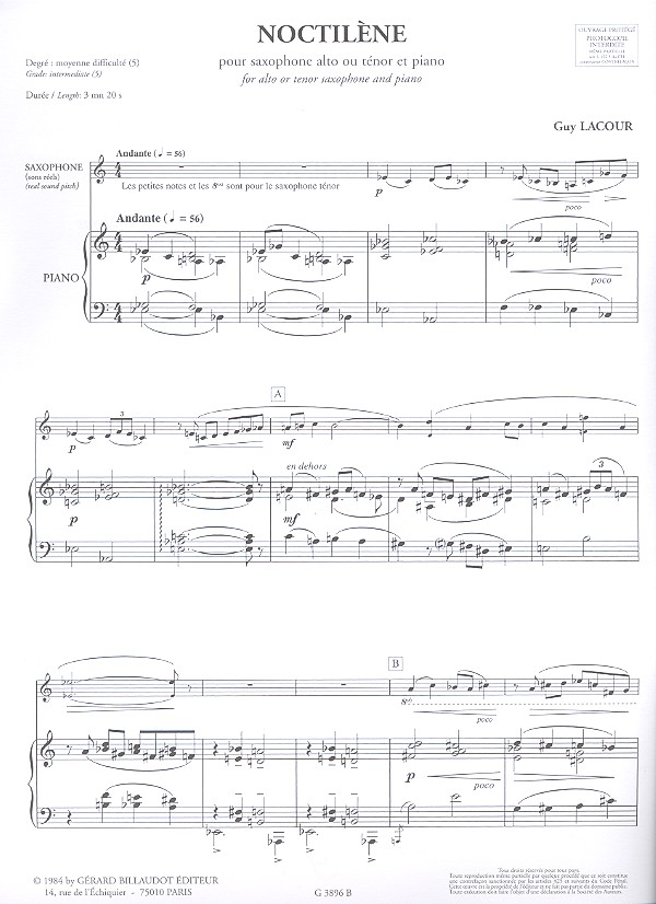 | Noctilčne pour saxophone alto ou tenor et piano | |