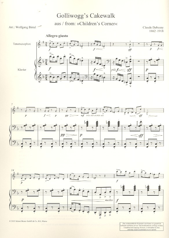 | Golliwogg's Cakewalk für Tenorsaxophon und Klavier | |