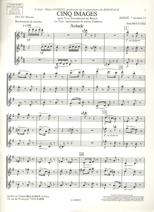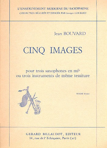 | 5 images pour 3 saxohones en mi ou 3 instruments de meme tessiture, partition+parties | |