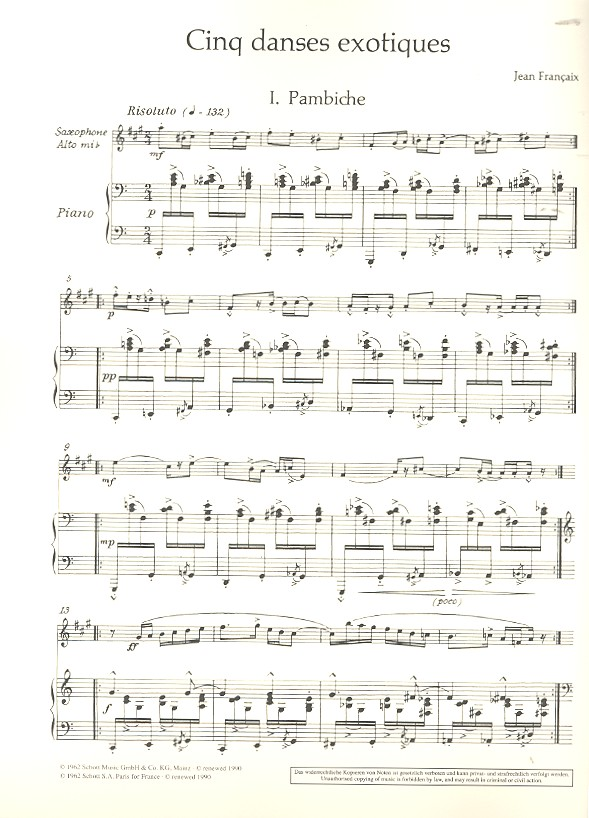 | 5 danses exotiques für Altsaxophon und Klavier | |