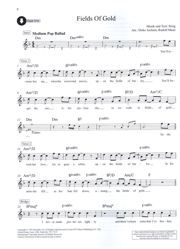 | The 14 Most Beautiful Popsongs Die 14 schönsten Popsongs Schott Clarinet Lounge Juchem, Dirko, arr. Mauz, Rudolf, arr. Rutar, Harald, arr. Mit den Classic Pop Ballads entführt Rudolf Mauz (Die fröhliche Klarinette) auf eine musikalische Reise durch mehrere Jahrzehnte der Popmusik. Gewohnt gekonnt und ausdruckstark präsentiert er 14 unsterbliche Hits von Hotel California über Angie, Wind Of Change bis hin zu Layla. Die gut spielbaren Bearbeitungen wurden vom Autor selbst aufgenommen und liegen als Playback und in Vollversionen vor. About the Songs / über die Songs Always On My Mind Angie Father And Son Fields Of Gold Hotel California I Shot The Sheriff Killing Me Softly Layla Scarborough Fair Stand By Me Streets Of London Sweet Home Chicago Wind Of Change Youve Got A Friend | |