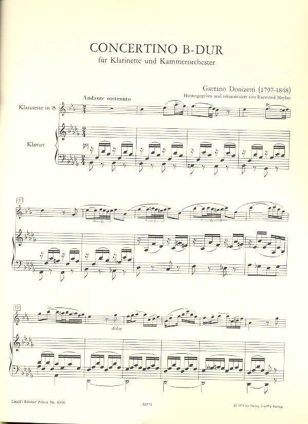 | Concertino B-Dur für Klarinette und Kammerorchester für Klarinette und Klavier | |