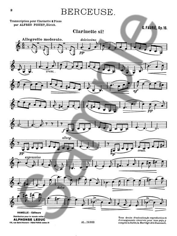 | BERCEUSE OP.16 POUR CLARINETTE ET PIANO | |