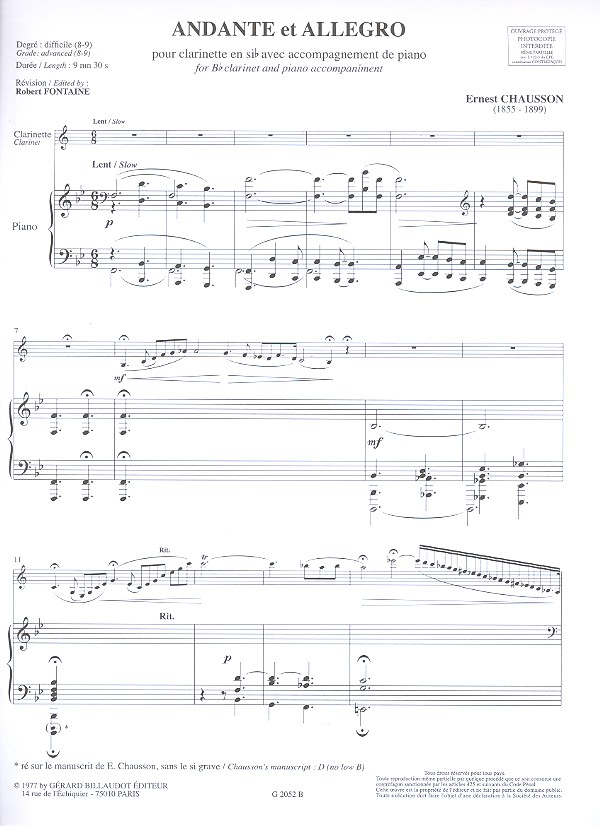 | Andante et Allegro pour clarinette et piano | |