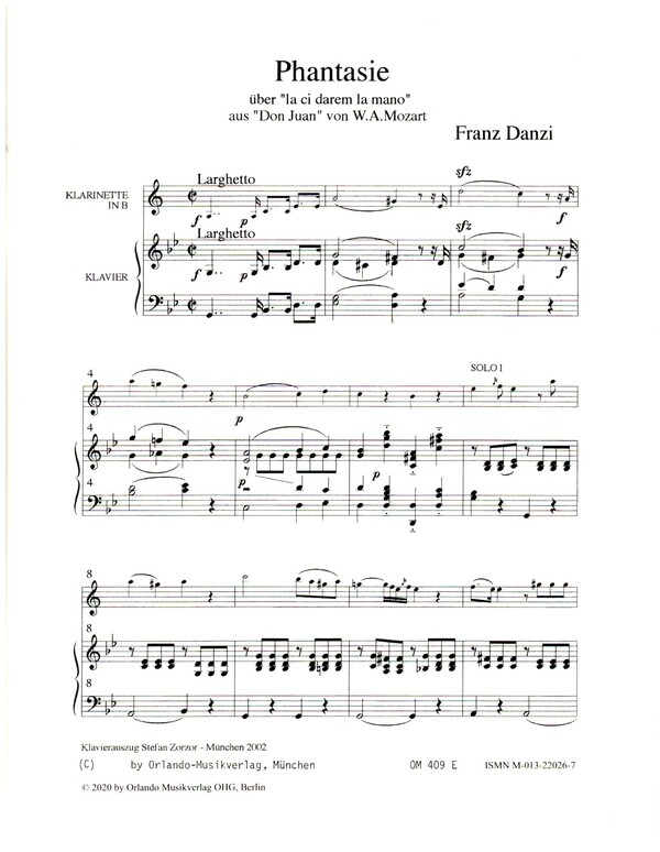 | Phantasie über "Lá ci darem la mano" aus "Don Juan" von W.A. Mozart für Klarinette und Klavier | |