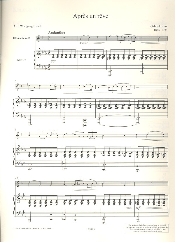| Aprčs un ręve op. 7/1 für Klarinette in B und Klavier | |