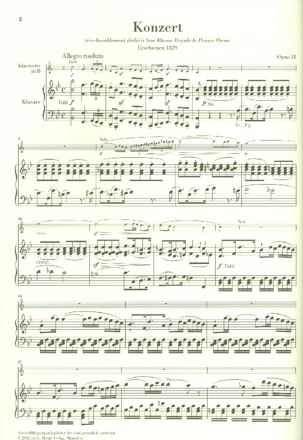 | Konzert B-Dur op.11 für Klarinette und Orchester für Klarinette und Klavier | |