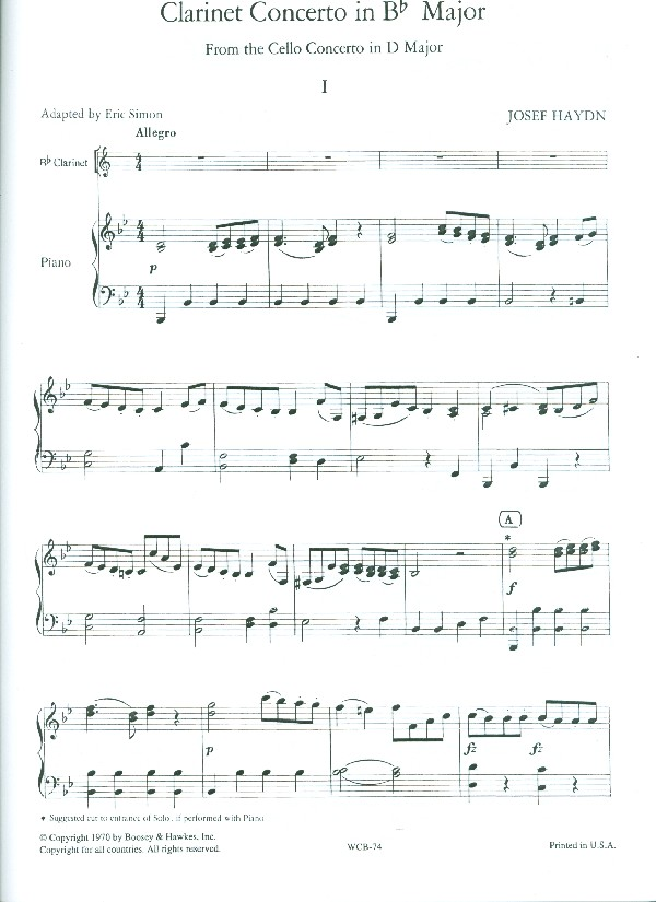 | Konzert B-Dur für Klarinette und Orchester für Klarinette und Klavier Klavierauszug | |