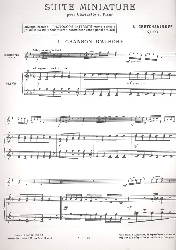 | Suite miniature pour clarinette et piano | |