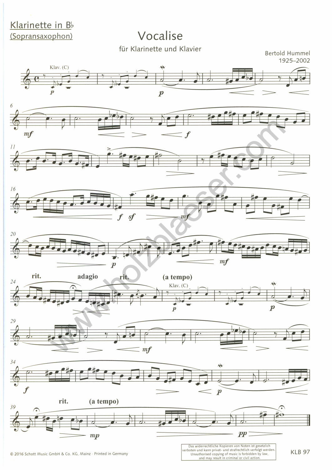 | KLB97 Vocalise für Klarinette und Klavier | |