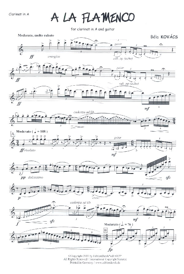 | A la Flamenco für Klarinette und Gitarre Partitur und Stimme | |