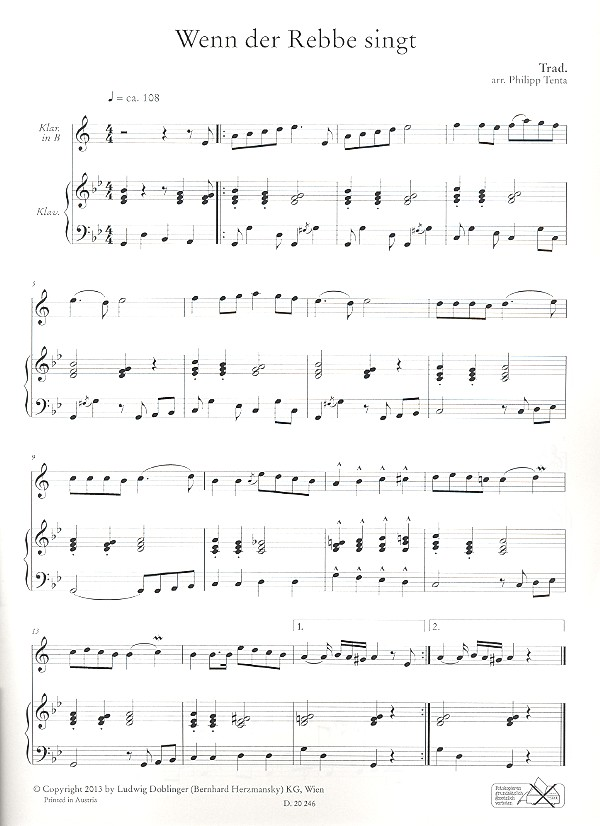 | Tenta, Philipp, arr. 6 Stücke über jiddische Volkslieder Wenn der Rebbe singt Yankele Papirosn Rezele Belz Shabat Shalom | |