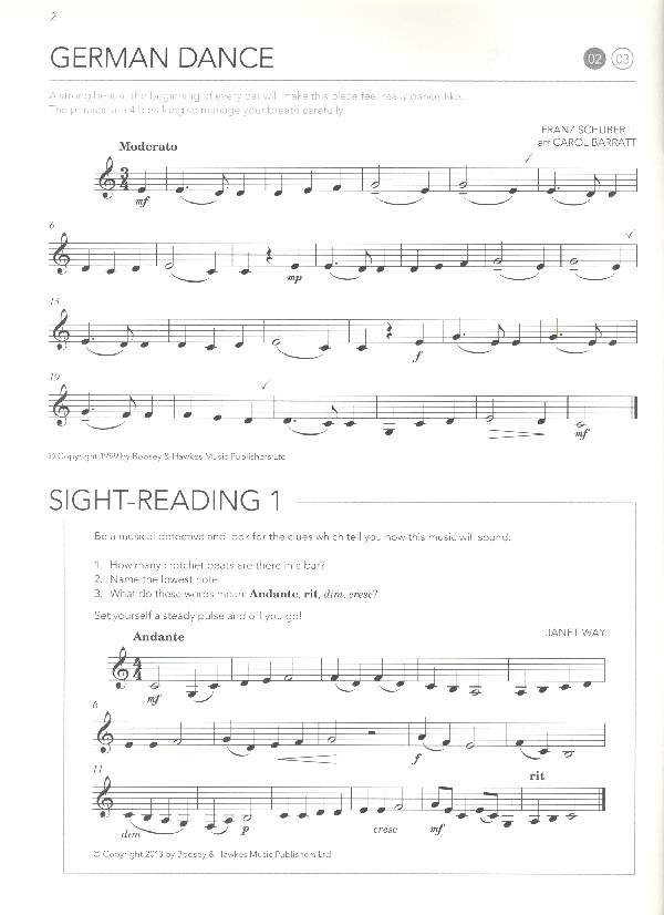 | Way, Janet, ed The complete Resource for the Clarinettist German Dance (F. Schubert) Cantilena from Adiemus (K. Jenkins) Upstairs, Downstairs (A. Marks) Promenade from Summer Sketches (P. Harris) Crumbs (C. Norton) Scherzando from For Children (B. Bartók) How Graceful (C. Norton) Scarborough Fair Peruvian Dance Tune (Traditional Peruvian) Study in F (F. Demnitz) Mama Paquita (Traditional Brazilian) Minuet (H. Purcell) Sunrise from 100 easy Studies for Piano (C. Czerny) Three easy Studies (P. Wastall) Creative Reflection (J. Way) Ffigysbren (Traditional Welsh) Fanfare (N. Chédeville) Three Blind Mice (Traditional English) Frčre Jacques (Traditional French) | |