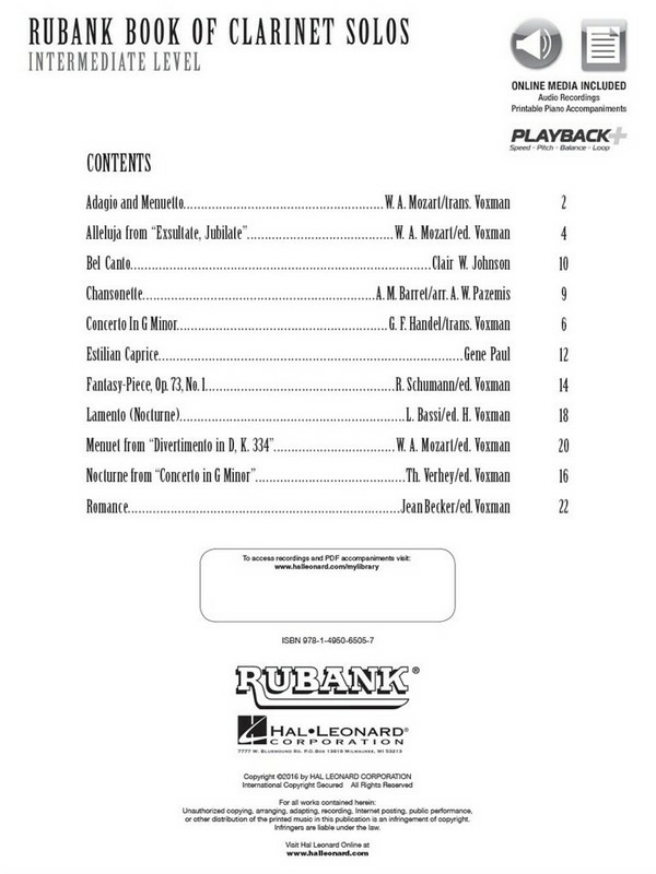 | Clarinet Solos - intermediate Level for clarinet and piano | |
