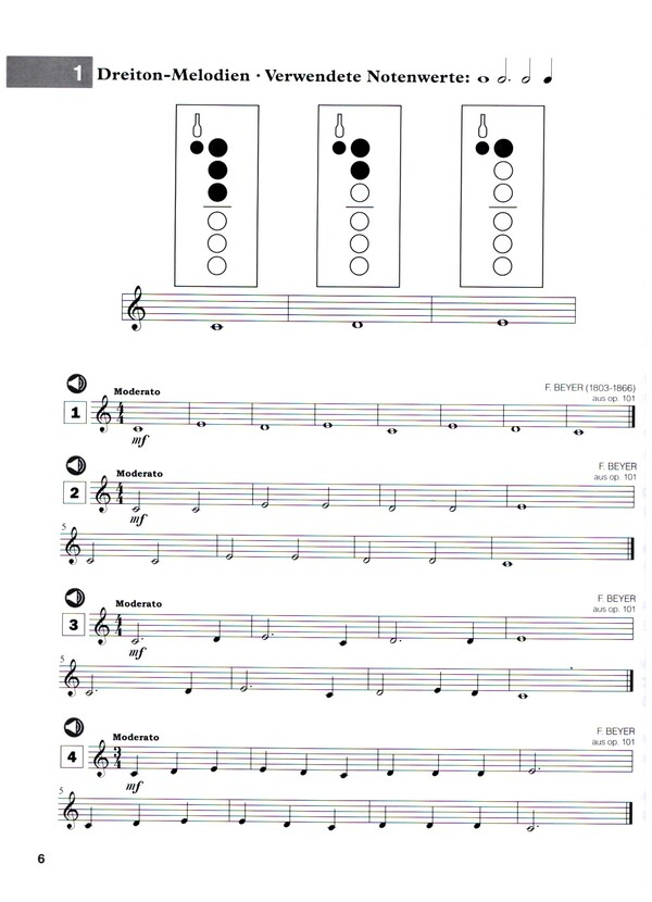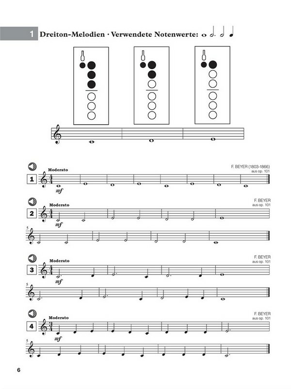 | Cappellari, Andrea, ed 100 Melodien im Drei- Bis Achttonraum in Ansteigendem Schwierigkeitsgrad Die ERSTE KLASSIKSAMMLUNG FÜR KLARINETTE umfasst eine Auswahl von 100 Melodien aus dem klassischen Repertoire. Sie resultiert aus Andrea Cappellaris langjähriger musikpädagogischer Erfahrung und Forschungstätigkeit. Melodien klassischer Komponisten werden Schülern jeden Alters ab den allerersten Unterrichtssstunden zugänglich. Sämtliche 100 kurzen Melodien bestehen aus minimal drei bis maximal acht verschiedenen Tönen. Ausschließlich grundlegende Notenwerte von der Achtel zur ganzen Note werden verwendet. Die Stücke sind in ansteigender Schwierigkeit angeordnet und stehen in den für Klarinette am besten geeigneten Tonarten. Die einfach gehaltenen Klavierbegleitungen motivieren zum Ensemblespiel von Beginn an. Die Aufnahmen der Klavierbegleitungen sind hervorragende Übehilfen und können über einen individuellen Zugangscode online abgespielt oder heruntergeladen werden. | |