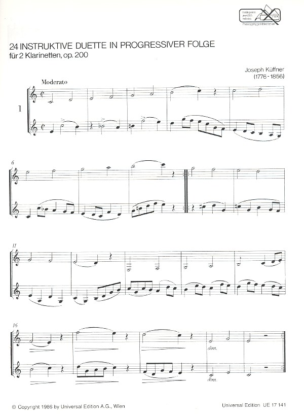 | 24 instruktive Duette op.200 für 2 Klarinetten Spielpartitur | |