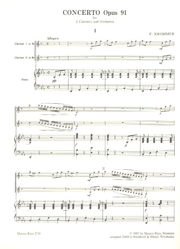 | Concerto Es-Dur op.91 für 2 Klarinetten und Orchester für 2 Klarinetten und Klavier | |