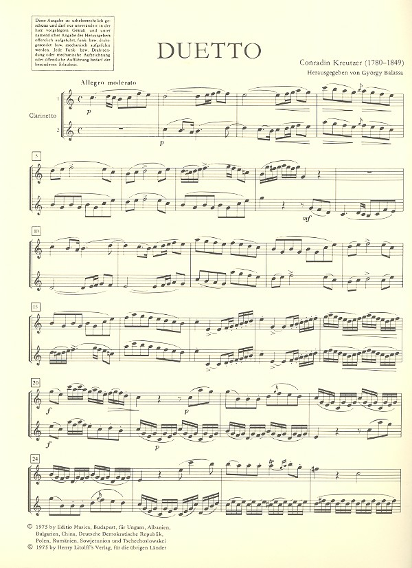 | Duett C-Dur für 2 Klarinetten Spielpartitur | |