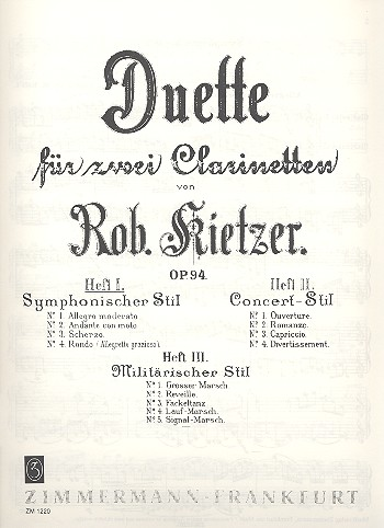 | Duette op.94 Band 1 Sinfonischer Stil für 2 Klarinetten Spielpartitur | |